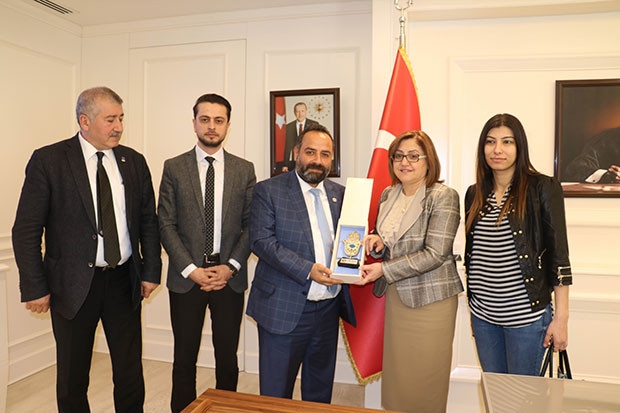 Gaziantep Basın Cemiyeti Başkanı Arif Kurt ve yönetim kurulu üyeleri Gaziantep Büyükşehir Belediye Başkanı Fatma Şahin’i ziyaret etti.