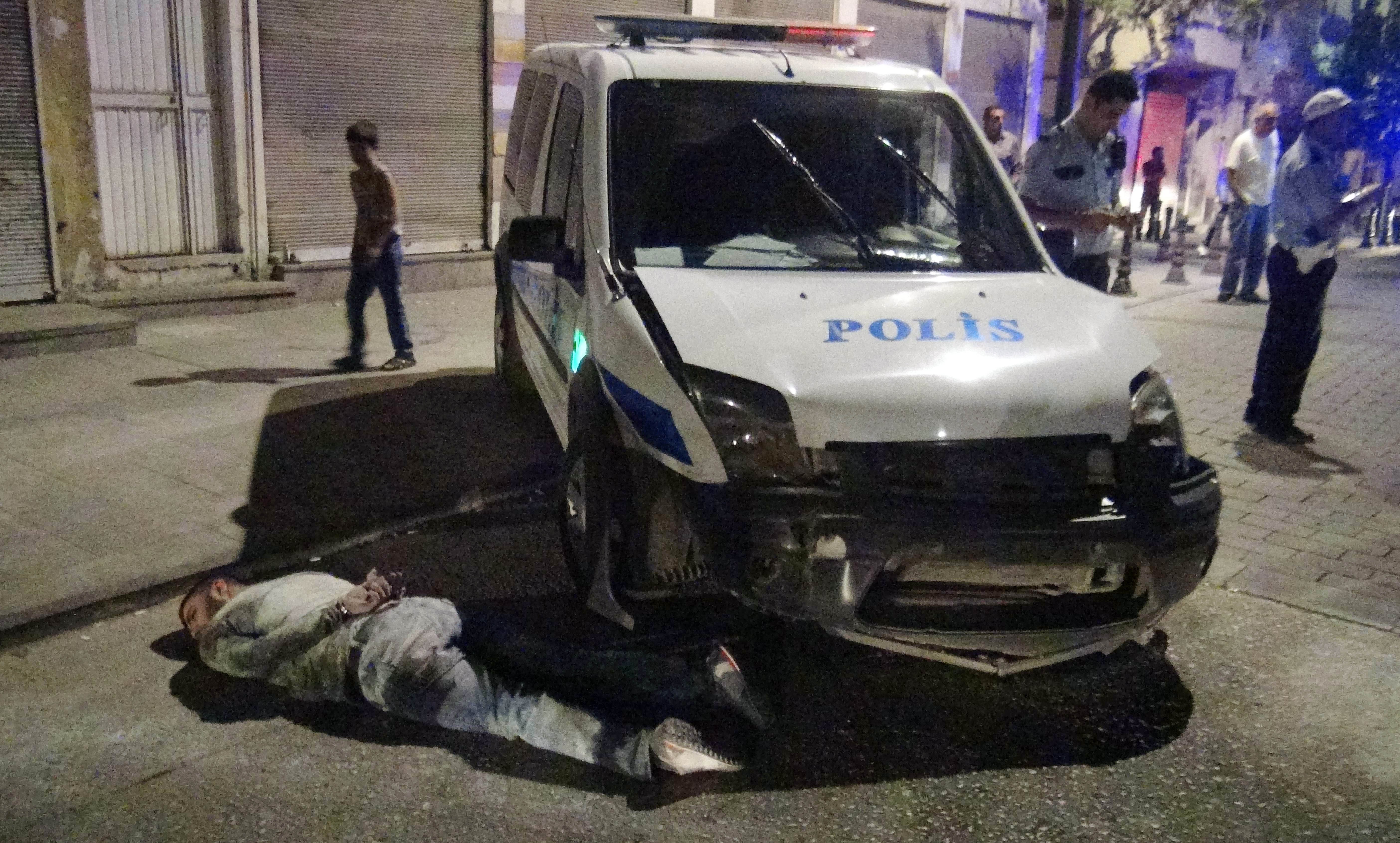 Gaziantep’te polisi görünce kaçan bir otomobil, polis otosuna çarparak durdu. 20 dakika süren kovalamacada 2 polis yaralandı.