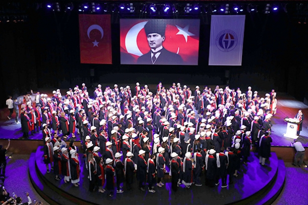 GAÜN Mavera Kongre ve Sanat Merkezi’nde gerçekleştirilen coşkulu mezuniyet töreninin açılışında konuşan GAÜN Rektör Vekili Prof. Dr. Recep Yumrutaş, Türkiye’nin imar edilmesinde, teknolojik olarak ilerlemesinde mühendislere önemli görev ve sorumluluklar düştüğünü belirtti. Konuşmasında öğrencilere öğütlerde bulunan Prof. Dr. Recep Yumrutaş, “Bu günden itibaren sizler için yeni bir dönem ve yeni bir hayat başlıyor. Her biriniz sanayinin farklı işletmelerinde, işyerlerinde ve farklı kurumlarda istihdam olacak ve çalışacaksınız. Sizler problem çözen insan olarak, her türlü makina, cihaz ve ekipmanın üretilmesinde, ülkemizin imar edilmesinde ve teknolojik olarak ilerlemesinde siz mühendislerimize çok önemli görevler ve sorumluluklar düşüyor. Çalıştığınız işyerlerinde birçok problemlerle karşılaşacaksınız. Bu problemler ve güçlükler karşısında asla yılmayacağınıza, aldığınız eğitimleri temel alarak bu sorunların üstesinden geleceğinize, ülkemizin ilerlemesi için yüreğinizi ortaya koyacağınıza gönülden inanıyorum. Şu ana kadar üniversitemizde ve fakültemizde edindiğiniz bilgi birikiminizi, tecrübelerinizi ve donanımınızı ailenizin, ülkemizin ve insanımızın faydasına kullanacağınıza inancım tamdır. İnşallah çalışacağınız şirketlerde, kurumlarda çalışkan ve gayretli bir mühendis olarak bu topluma bir değer katacak, bir katma değer sağlayacaksınız" şeklinde konuştu.