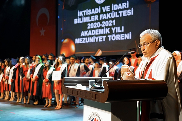 Gaziantep Üniversitesi (GAÜN) İktisadi ve İdari Bilimler Fakültesi tarafından 2020-2021 eğitim-öğretim dönemi Mezuniyet Töreni’nde İktisat, İşletme, Uluslararası Ticaret ve Lojistik b ölümlerinden lisans eğitimlerini tamamlayan 426 öğrenci, kep atarak mezun oldu.