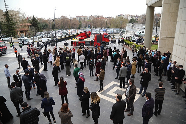 İhbarı alan İtfaiye Daire Başkanlığı Müdahale ve Kurtarma ekipleri ve 112 sağlık ekipleri olay yerine intikal ediyor. Binada bulunan çalışanlar deprem anında çök-kapan-tutun prensibini uygulayarak deprem sonrasında sarsıntının geçmesi ile gelen anonslar ve acil durum ekiplerinin talimatları doğrultusunda hareket edip toplanma bölgelerine gidiyor.