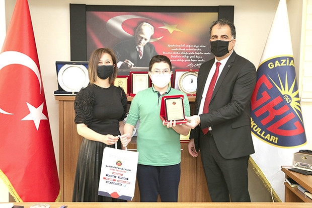57’inci Kütüphane Haftası etkinlikleri kapsamında Gaziantep Kolej Vakfı Özel Okulları kütüphaneyi en fazla kullanan ve en çok kitap okuyan öğrencileri belirleyerek ödüllendirdi. Kutlamalar kapsamında en fazla kitap okuyan öğrencilerden Veronika Toğuz, Asya Aynur Göktekin, İzem Biba, Candan Düzen, Özge Uygur, Ali Emir Aslan, Esma Utanır , Mehmet Safa Ata'ya ödüllerini GKV Özel Okulları Genel Müdürü İsmet Tiryaki takdim etti. GKV Özel Okulları öğrencilerinin, kitap okuma alışkanlığını sürdürmeye ve bunu bir yaşam felsefesi haline getirmeye devam edeceklerine inandığını ifade eden GKV Özel Okulları Genel Müdürü İsmet Tiryaki, “Gaziantep’in ve ülkemizin en zengin kütüphanelerinden birisine sahip olan GKV Özel Okulları kütüphanesi pandemi kurallarına uygun olarak düzenlenmiş ve öğrencilerin keyifle istedikleri kitaplara ve kaynaklara ulaşabilecekleri bir ortam haline getirilmiştir. Burada öğrencilerimiz alınan önlemlere uyarak kitap okuma, araştırma yapma ve kaynakları tarayarak yürüttükleri projeleri için gerekli kaynakları bulma konusunda çok şanslı. Kütüphanemiz sadece kurumumuz öğrencilerine değil, aynı zamanda bölgemizde yer alan diğer okul öğrencilerimize de hizmet vermektedir. Geleneksel hale getirdiğimiz en fazla kitap okuyan ve okul kütüphanesinden en fazla faydalanan öğrencilerimize yönelik ödüllerimizi bu yıl da başarılı öğrencilerimize takdim ettik. Öğrencilerimizi kutlar kitaplarla inşa edilmiş yarınlar dileriz” diye konuştu.
