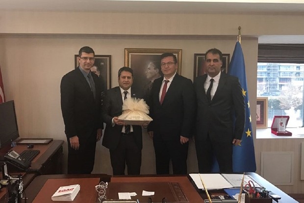 Gaziantep Kolej Vakfı Genel Müdürü Müfit Taşlıyar ve beraberindeki heyet Avrupa Bakan Yardımcısı Ali Şahin’i ziyaret ederek eğitimle ilgili genel değerlendirmelerde bulundular. Gaziantep’te eğitim alanında GKV Özel Okullarının üstlendiği misyonun önemine değinen Bakan Yardımcısı Ali Şahin yarım asırdan fazla bir zamandır eğitime destek veren GKV Mütevelli ve Yönetim Kurulu Başkanı Nüket Ersoy ve Celal Ersoy’un çalışmalarını yakından takip ettiklerini, binlerce öğrenciyi geleceğe hazırlayan GKV Özel Okullarının üstlendiği eğitim misyonunu başarıyla yerine getirdiğini belirtti. Yurt dışı etkinliklerle de GKV Özel Okullarının ülke ve Gaziantep tanıtımına katkılarının küçümsenemeyeceğini ifade eden Bakan Yardımcısı Şahin GKV Özel Okulları yöneticilerinin ziyaretinden memnun olduğunu da sözlerine ekledi.
