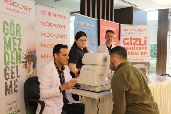 Medical Point Gaziantep Hastanesi Başhekim Yardımcısı Dr. Ümit Mutlu Tiryaki ise halk arasında “Göz Tansiyonu” olarak bilinen Glokom hastalığının, göz içi basıncının yükselmesiyle optik sinirin (görme siniri) görsel bilgileri beyne taşımak için gözü terk ettiği noktada oluşan hasara bağlı meydana geldiğini belirterek Medical Point Gaziantep Hastanesi’nde bu tür etkinliklerle görme kaybına neden olabilen Glokom hastalığına dikkat çekmenin ve farkındalık oluşturmanın oldukça önemli olduğunu ifade etti.