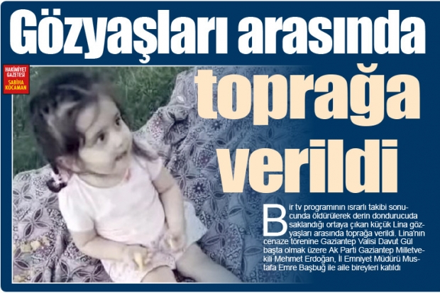Bir tv programının ısrarlı takibi sonucunda öldürülerek derin dondurucuda saklandığı ortaya çıkan küçük Lina gözyaşları arasında toprağa verildi.