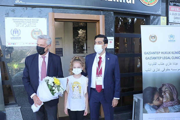 Birleşmiş Milletler Mülteciler Yüksek Komiseri Filippo Grandi Türkiye temasları kapsamında yanındaki heyet ile birlikte Türkiye Barolar Birliği ve Birleşmiş Milletler Mülteciler Yüksek Komiserliği ortak projesi olan Gaziantep Hukuk Kliniğini ziyaret ederek, Gaziantep Hukuk Kliniği Sorumlu Avukatı Mehmet Serkan Ergün’den bilgi aldı.