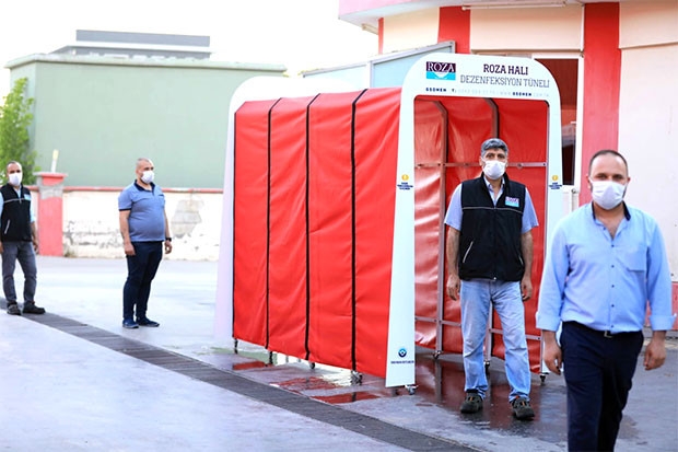 Dezenfeksiyon tüneli ilk kullanan firmalardan olan Roza Halı, Özpolat Makine ve Elyaf İplik firma yetkilileri üründen oldukça memnun olduklarını belirterek, koronavirise karşı toplu giriş çıkışların olduğu yerlerde iyi bir çözüm olduğunu kaydettiler.