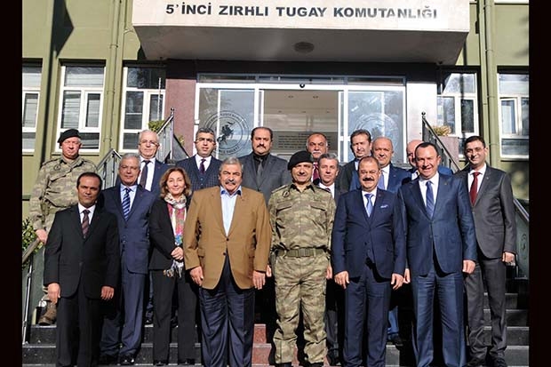 GSO Onursal Başkanı Abdulkadir Konukoğlu, Meclis Başkanı Mustafa Topçuoğlu ve Yönetim Kurulu Başkanı Adil Sani Konukoğlu, Yönetim Kurulu Üyeleri ile birlikte Tugay Komutanı Tuğgeneral Ali Ekiyor’u makamında ziyaret ettiler.