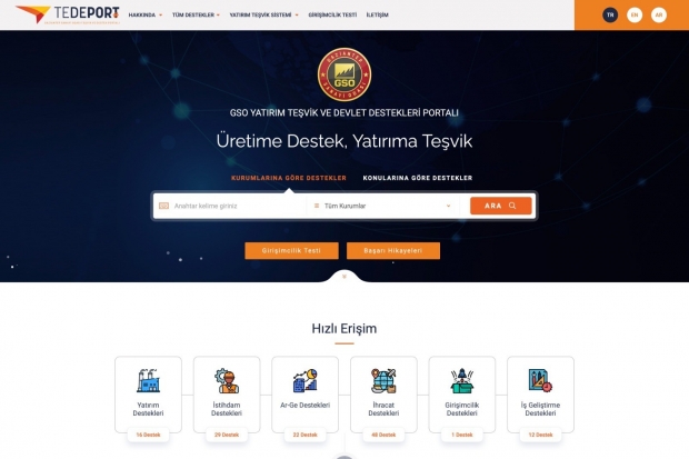Yatırımcı ve girişimcilerin farklı konu ve sektörlerde, tüm devlet kurumlarına ait güncel desteklerden ve yatırım teşviklerinden bilgi edinmelerini sağlamak amacıyla GSO Yatırım, Teşvik ve Devlet Destekleri Portalı (TEDEPORT) hayata geçirildi.