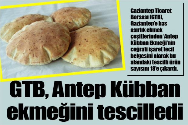 Gaziantep Ticaret Borsası (GTB), Gaziantep’e has asırlık ekmek çeşitlerinden ‘Antep Kübban Ekmeği’nin coğrafi işaret tecil belgesini alarak bu alandaki tescilli ürün sayısını 18’e çıkardı.