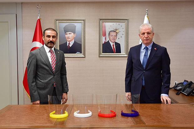 Üretilecek yüz siperlerinin hali hazırda kullanılan ve üretilenlerden farklı olduğuna dikkat çeken Tuncay Yıldırım, “Ürettiğimiz siperler kullan at değil, hijyenik bir şekilde birden fazla kullanıma olanak sağlayan bir model. Önündeki asetat değiştirilerek uzun süre kullanım imkanı sunuyor. Biz devletin desteği ile kurulan GETHAM Tasarım ve Modelleme Merkezimizin üretim ve teknoloji gücünü milletimiz için seferber ettik. Bu noktada Alman Uluslararası İşbirliği Kurumu (GIZ)’e de iş birliği için teşekkür etmek istiyorum. Bu süreçte herkesin aynı gemide olduğunu unutmamak gerekir” dedi.