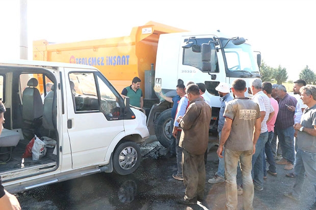 İşçi servisi ile hafriyat kamyonunun çarpışması sonucu meydana gelen kazada 5 kişi yaralandı.