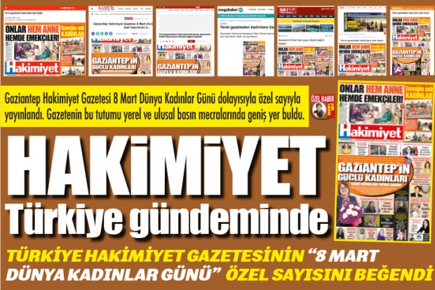 Gaziantep Hakimiyet Gazetesi 8 Mart Dünya Kadınlar Günü dolayısıyla özel sayfa tasarımı yaptı. Gazete kadınlara özel baskı ile okuyucuların karşısına çıktı. Gazetede şehirde kadın belediye başkanı, milletvekili, siyasi parti temsilcileri, sivil toplum kuruluşu temsilcisi ile emek noktasında faaliyet gösteren kadınları haberleştirildi. Gazete yönetiminin bu güne özel olarak yaptığı bu çalışma ülke genelinde kadın örgütleri tarafından takdirler karşılandı.