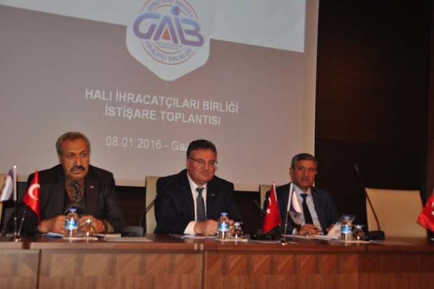 GAİB hizmet binasında gerçekleştirilen halı istişare toplantısında Gaziantep Halıcılar Odası Başkanı Mehmet Törer ise, sektörle ilgili sorunların çözümü için ortak hareket edilmesi gerektiğini vurgulayarak “Gaziantep halı sektörü her sene yeniliklerle, AR-GE çalışmalarıyla, renk, desen ve kaliteli ürünler üreterek müşterinin talepleri de araştırılarak, bu doğrultuda üretim yapan sanayicilerimiz ürünlerini 23-26.05.2016 tarihindeki DomotexTurkey Makine Halısı Fuarı’ nda birçok yeniliklerle sergileyecek. Gaziantep’in büyük kuruluşlarından olan Gaziantep Ticaret Odası, Gaziantep Halı ihracatçılar Birliği ve Gaziantep Halıcılar Odası olarak titiz bir şekilde tanıtım faaliyetlerine aralıksız devam etmekteyiz. Geçen sene olduğu gibi bu yılda ziyaretçi sayısında artış beklemekteyiz” şeklinde konuştu.