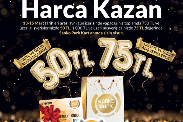 13-15 Mart 2020 tarihleri arasında gerçekleşecek kampanya kapsamında ziyaretçiler, Sanko Park Alışveriş Merkezi’ndeki mağazalardan aynı gün içerisinde yapılacak toplamda 750 TL ve üzeri alışverişlerde 50 TL, 1.000 TL ve üzerinde 75 TL değerinde Sanko Park Kart kazanacak.