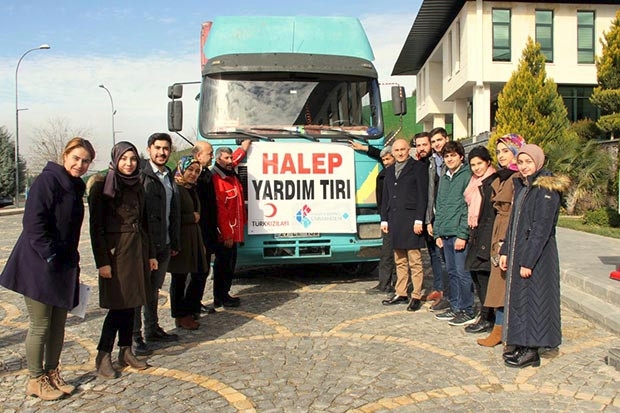 Üniversitenin öğrenci kulüpleri tarafından "Halep İçin Yardım TIR'ı" kampanyası kapsamında gıda maddeleri, mont, kıyafet, bot, eldiven, bere, battaniye ve pamuk gibi insani yardım malzemeleri, TIR'a yüklendi. Yardım malzemeleriyle yüklü TIR, Halep’e gitmesi ve yardım konvoyuna katılması için Kızılay'a teslim edildi.