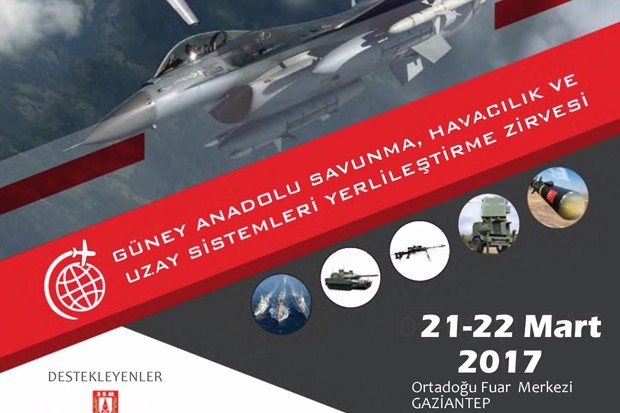 Türk savunma havacılık ve uzay sanayinin, devletin stratejisi olarak kabul edilen yerlileşme ve millileşme sürecine, Güney Anadolu Bölgesi Kümelenmesine dahil 10 il olarak, katkı sağlamak amacıyla, Gaziantep’te Ortadoğu Fuar Merkezinde (OFM), 21 - 22 Mart 2017 tarihlerinde, “Güney Anadolu Savunma, Havacılık ve Uzay Sistemleri Yerlileştirme Zirvesi” gerçekleştirilecek.