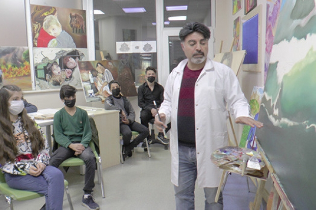 Suriyeli Ressam Dılbaz Berazi öğrencilerle yüz yüze eğitime başladıklarını söyleyerek, “Öğrencilerime yüz yüze eğitime başladım. Öğrencilerin dersi yoksa buraya geliyorlar. Öğrencilerime resim öğretiyorum. Her bir öğrencinin bir seviyesi var. Ona göre eğitim veriyoruz. Önce kurşun kalemden başlıyoruz. Seviyesi arttıktan sonra yağlı boyaya geçiyoruz. Bize bu fırsatı veren Gaziantep Büyükşehir Belediyesine teşekkür ediyorum” dedi.