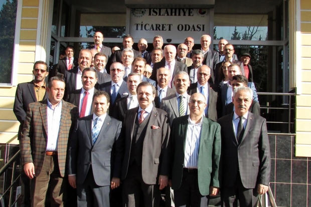Türkiye Odalar ve Borsalar Birliği Başkanı (TOBB) Rifat Hisarcıklıoğlu Belediye Başkanlığı’na seçilen eski İslahiye Ticaret Odası Başkanı Kemal Vural’ı ziyaret etti. İslahiye Belediyesi Hizmet binasına gelen Hisarcıklıoğlu Başkan Vural ile görüşerek, ilçe ekonomisi ve hizmetleri konusunda bilgi aldı. Hisarcıklıoğlu ve Vural İslahiye’nin tarıma dayalı ekonomisi üzerinde neler yapılabileceği konusunda fikir alışverişinde bulunuldu. Hisarcıklıoğlu, Belediye’den ayrılırken Başkan Vural’a Dede Korkut kitabı hediye etti. Vural da, Hisarcıklıoğlu'na ismi ve belediye başkanlığın ambleminin yer aldığı bakır işlemeli tablo ile İslahiye Belediyesi’nin girişimci kadınlara yönelik açılan kilim atölyesinde üretilen kilim ve seccade hediye etti. İslahiye Ticaret Odası’na geçen Hisarcıklıoğlu burada Oda Başkanı Selahaddin Türkmen ve oda yönetimiyle bir araya geldi. Başkan Hisarcıklıoğlu, gezilerine başarılı girişimcileri ödüllendirmek için yola çıktığını bu vesile ile 2002’den buyana ikinci gelişi olduğunu hatırlattı. İslahiye’de OSB’nin en önemli projesi olduğunu vurgulayan Hisarcıklıoğlu, Hassa Tüneli'nin açılmasıyla İslahiye’nin denize limana kavuşması değil bütün Güneydoğu Anadolu’nun limana daha kolay daha ucuz daha hızlı bir şekilde ulaşması anlamına geldiğini ifade etti. Hisarcıklıoğlu, “Gaziantep, bugün, Türkiyenin gurur duyduğu sanayi şehirlerinden bir tanesidir. Buradaki sanayicilerimizin ne kadar hızlı ne kadar çabuk ulaştırabilirsek o kadar daha ucuz maliyetle rakipleriyle 198 -199 Ülkeyle rekabet etme şansı olacak. Burada en büyük kar da İslahiye’nin olacaktır” dedi. Suriyeli Mülteciler konusuna değinen Hisarcıklıoğlu, “3 milyona doğru yaklaşan ülkemizdeki Suriyeliler konusunda bugüne kadar bütçemizden Türkiye’de 40 ilçemizde 9 Milyar dolara yakın bunlara kaynak ayrıldı. Hiçbir batılı ülke buna destek olmamıştır. İnşallah şimdi önümüzdeki dönemde dünyada bunun farkına vardı. Ne zaman göç yolları hareket etmeye başlayınca şimdi daha hassas davranmaya başladı“ dedi. TOBB Başkanı Hisarcıklıoğlu, “Biz de TOBB Olarak özellikle Suriye'den göçen bu kardeşlerimizin meslek sahibi olması için mesleki eğitim projemiz hayata geçirecek bir projeyi yaptık. İnşallah Gerek AB ile gerek hükumetimizle devletimizle görüşüyoruz. Eğer bu devreye girerse dünyada mesleki eğitim en başarılı olan ülke Almanya. Almanya’nın yapmış olduğu gibi buradaki Suriyeli kardeşlerimizi aynı zamanda İslahiyeli kardeşlerimizi meslek sahibi yapıp kollarına bir altın bilezik takıp nitelikli eleman, gerek sanayimizin gerek hizmet sektörünün tarım sektörünün nitelikli elamanlara kavuşması için proje yaptık” dedi.