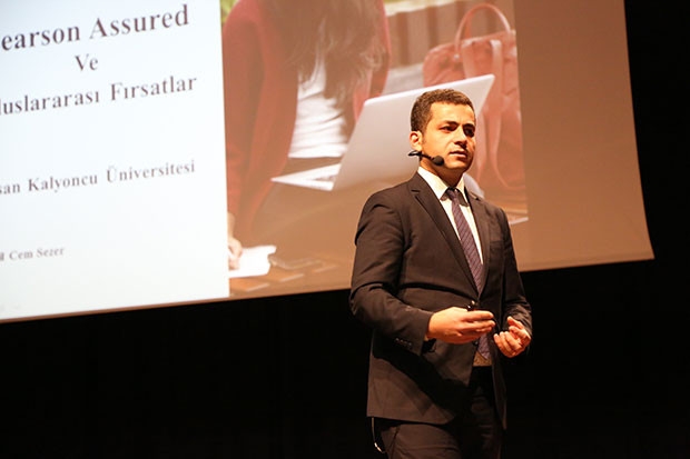 HKÜ Kongre ve Kültür Merkezinde gerçekleşen “Pearson Assured ve Uluslararası Fırsatlar” programının konuğu Pearson temsilcisi İsmail Cem Sezer oldu. İsmail Cem Sezer öğrencilere, akredite edilmiş bir kurumda dil eğitimi almanın avantajları ve bu sürecin sağladığı ulusal ve uluslararası fırsatlar hakkında bilgiler verdi.
