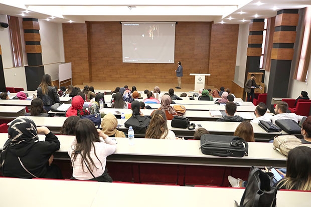 Öğrencilerin mezun olmadan özgeçmişlerini hazırlamaları, iş yaşamına hazırlanırken adapte sürecini iyi değerlendirmeleri ve kendilerini geliştirmeleri gerektiğini vurgulayan HKÜ Eğitim Fakültesi Arş. Gör. Ahmet Ayaz ise “Özgeçmiş Hazırlama Teknikleri” konulu sunumunu gerçekleştirdi. İş başvurusu, staj başvurusu ve eğitim başvurusu için hazırlanacak özgeçmişlerin nasıl hazırlanması gerektiğini anlatan Ayaz, ilk adım olarak kedini ve kurumu tanımanın önemine dikkat çekti. Güçlü yönler ve geliştirilebilir yönlerin bahsedilmesi gerektiğini söyleyen Ahmet Ayaz, HKÜ Kariyer Merkezi Web Sitesi, Yetenek Kapısı ve Europass gibi platformlardan özgeçmiş hazırlama desteği alabileceklerini ifade etti.