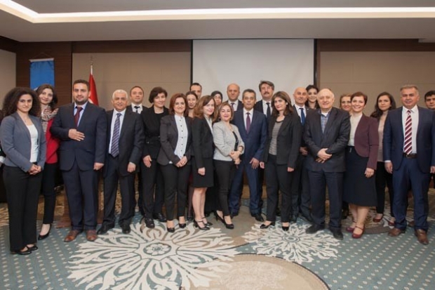 Toplantıya; Sosyal Güvenlik Kurumu Başkan Yardımcısı Opr. Dr. Orhan Koç, Genel Sağlık Sigortası Genel Müdürü Gazi Alataş, Araştırma ve Geliştirme Daire Başkanı Ertan Yığman HKÜ Rektörü Prof. Dr. Tamer Yılmaz, HKÜ Eğitim Fakültesi Dekanı Prof. Dr. Şener Büyüköztürk, proje uygulama eğitimine katılan SGK uzman personeli ve eğitimi veren öğretim üyeleri katıldı.