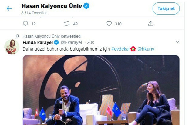 Funda Karayel: “ Daha güzel baharlarda buluşabilmemiz için… #evdekal #hkunv”