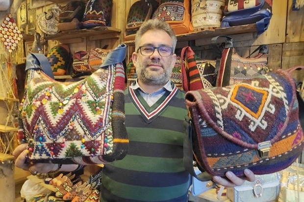 Gaziantep’te yaşayan Ayhan Demirkıran, 5 yıl önce hobi olarak başladığı yırtılmış kilim ve yünlerden yaptığı çantaları 20 ülkeye ihraç ediyor.