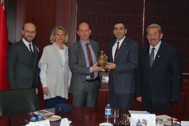 Hollanda Ankara Büyükelçiliği Ekonomi Ataşesi Jeroen Kelderhuis, GTO Başkanı Hıdıroğlu’na yaptığı ziyarette Türkiye ile Hollanda arasındaki ticari ve diplomatik ilişkilerin çok eskilere dayandığını, Türkiye’de faaliyet gösteren 2.500 Hollandalı firma bulunduğunu, Hollanda ile Gaziantep arasında ticari ilişkilerin gelişmesinde Gaziantep Ticaret Odasının büyük rolü olduğunu vurguladı.