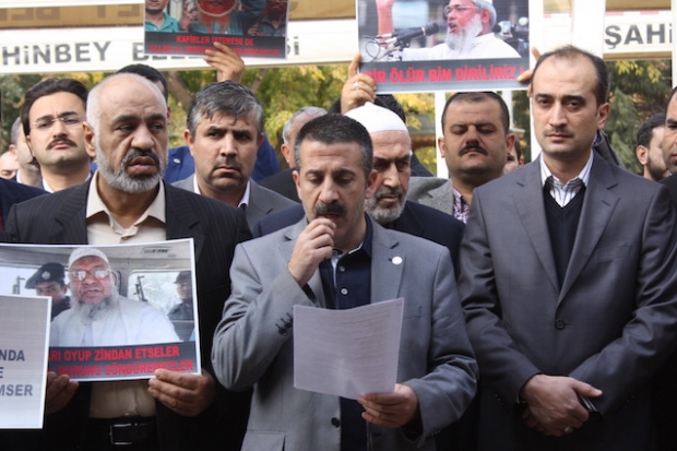 Ulu Cami’de bir araya gelen Eğitim Bir-Sen Gaziantep Şubesi üyeleri, Bangladeş’te idam edilen Cemaat-i İslami Partisi üyeleri için öğle namazına müteakip cenaze namazı kıldılar. Çok sayıda vatandaşın katıldığı cenaze namazı sonrasında Eğitim Bir-Sen Gaziantep Şube Başkanı Ahmet Gök, basın açıklamasında bulundu. Cemaat-i İslami Partisi üyelerine yönelik idam kararını eleştiren Gök, “Bangladeş’te İslam Dünyasının birlikteliğini savunan Cemaat-i İslami Partisi’ne yönelik devlet terörünü ve bu yolla Müslümanları hedef alan Bangladeş yönetimini kınıyoruz. Hukuk tanımaz, insan onuru bilmez yönetimin arkasında duran ve cesaretlendiren ülkeleri de Bangladeş’te yaşanan vahşetin suç ortağı olarak görüyor ve onları da bu tavırlarında vazgeçmeye davet ediyoruz. 1971 yılında gerçekleşen ve bölünmeyle sonuçlanan savaş sırasında benimsediği birlik politikasıyla bölünmeye karşı çıkan Cemaat-i İslami Partisi Liderleri, zalim Bangladeş yönetimi tarafından intikam hırsıyla idam ediliyor” şeklinde konuştu.