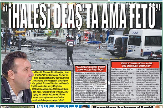 Güvenlik Uzmanı Abdullah Ağar, terör örgütü PKK’nın Gaziantep’te 4 yıl aralıklı gerçekleştirdiği 2 ayrı saldırının zamanlama olarak tesadüf olmadığını dile getirdi. İstanbul Yenibosna’da terör örgütü tarafından gerçekleştirilen saldırının ardından açıklamalarda bulunan Ağar, “İhalesi DEAŞ’ta kalan, ama ilginç bir şekilde PKK ve FETÖ’nün hedef ve amaçlarına hizmet eden saldırılarla karşı karşıyayız” dedi.