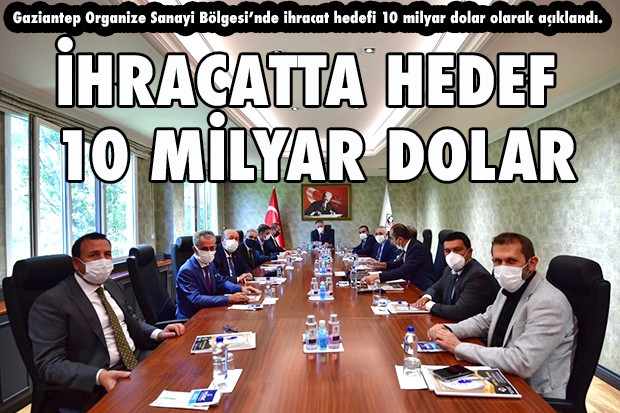 Gaziantep Organize Sanayi Bölgesi Müteşebbis Heyet toplantısı, Gaziantep Valisi Davut Gül'ün başkanlığında gerçekleştirildi. Gerçekleştirilen toplantıda Gaziantep OSB'nin hedefleri konuşuldu. Toplantıya ayrıca OSB Yönetim Kurulu Başkanı Cengiz Şimşek, heyet üyeleri katıldı. Toplantının ardından açıklamalarda bulunan Gaziantep Valisi Davut Gül, “Gaziantep ihracatında hedef 10 milyar dolar” diye konuştu.