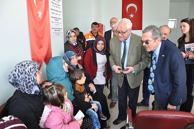 Uluslararası Pediatri Kurumu (IPA) Başkanı Prof. Dr. Errol Aldeen, beraberindeki heyetle Gaziantep'in Nizip ilçesindeki konteyner kentte kalan Suriyelileri ziyaret etti.