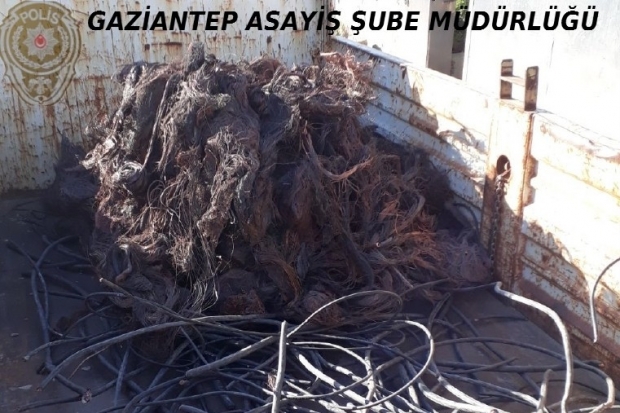 Gaziantep Emniyet Müdürlüğü, Asayiş Şube Müdürlüğü Hırsızlık Büro Amirliği tarafından ihbar üzerine Sanayi Mahallellesi'nde bulunan bir iş yerinde yapılan aramada bin 80 kilogram bakır kablo ele geçirildi. Olay ile ilgili iş yeri sahibi A.E, göz altına alındı. Göz altına alınan kişi yasal işlemler sonrası çıkarılmış olduğu mahkemece adli kontrol şartı ile serbest bırakıldı.