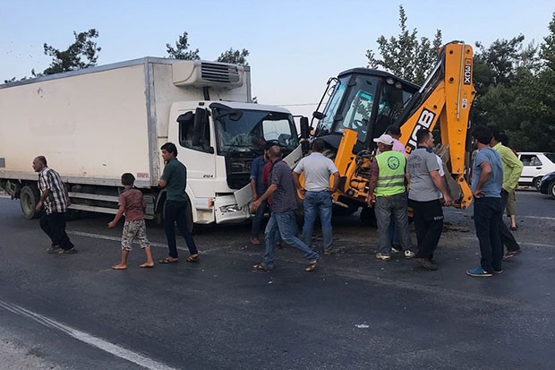 İslahiye'de Kamyon ile iş makinasının çarpışması sonucunda maddi hasarlı kaza meydana geldi.