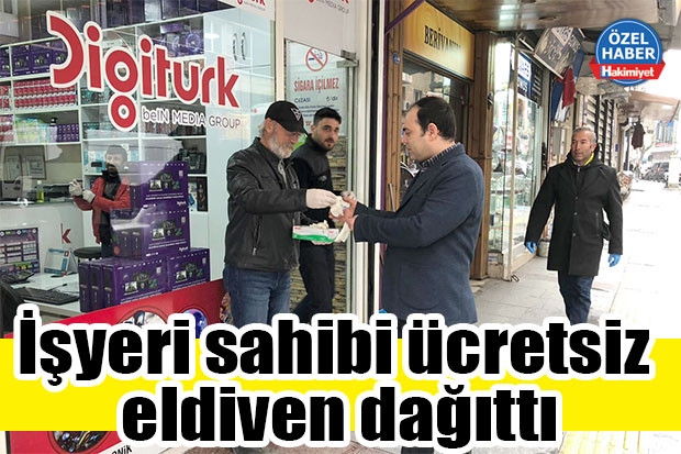 Gaziantep’te Atatürk Bulvarında Mehmet Fatih Budumlu adlı işyeri sahibi yoldan geçen vatandaşlara koronavirüse karşı korunmaları için ücretsiz eldiven dağıttı.