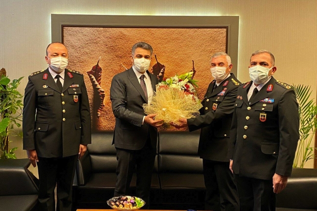 Gaziantep İl Jandarma Komutanı Albay Hüseyin Bekmez, komutan yardımcıları ile birlikte İl Emniyet Müdürü Cengiz Zeybek'i makamında ziyaret etti. Jandarma Komutanı Bekmez, Emniyet Müdürü Zeybek'e çiçek vererek, Türk Polis Teşkilatımızın kuruluşunun 176. yıl dönümünü kutladı.