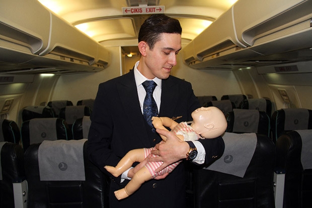 Türk Hava Yollarının (THY) İstanbul-Şırnak seferi sırasında soluk borusu tıkanan 1.5 aylık bebeğin hayatını, kabin memuru kurtardı.