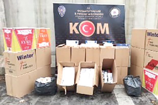Gaziantep’te polis, bir depo ve iş yerlerine yaptığı operasyonlarda 6 bin 162 paket kaçak sigara, 200 bin 60 adet boş makaron, 21 bin 600 adet dolu makaron ele geçirdi.