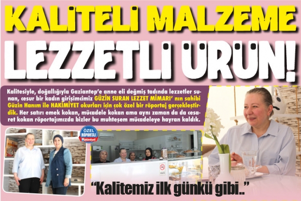 Kalitesiyle, doğallığıyla Gaziantep’e anne eli değmiş tadında lezzetler sunan, cesur bir kadın girişimcimiz GÜZİN SURAN LEZZET MİMARI’ nın sahibi Güzin Hanım ile HAKİMİYET okurları için çok özel bir röportaj gerçekleştirdik. Her satırı emek kokan, mücadele kokan ama aynı zaman da da cesaret kokan röportajımızda bizler bu muhteşem mücadeleye hayran kaldık.