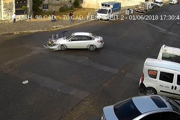 Gaziantep'in Mevlana Mahallesi 98. Cadde'de park alanından çıkan bir otomobil, arkasından gelen motosiklet ile çarpıştı. Otomobil sürücünün dikkatsizliği sonucu meydana gelen kazada motosiklet sürücüsü yaralandı. Yaralı sürücü kazanın ardından hastaneye kaldırılarak tedavi altına alındı. Kaza anı ise güvenlik kameralarına yansıdı.