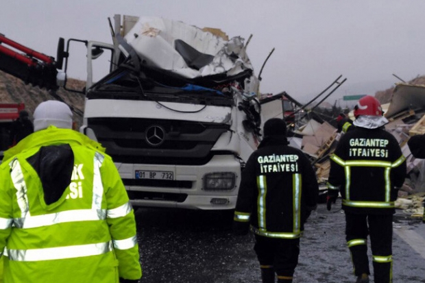 Gaziantep-Şanlıurfa karayolunda kamyon devrildi. Kazada sürücü hayatını kaybederken, kamyonda yüklü olan tavuk etleri ve kasalar etrafa saçıldı.