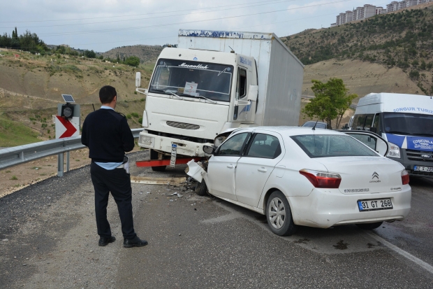 Besni ilçesinde, kamyon ile otomobilin kafa kafaya çarpıştığı kazada 5 kişi yaralandı.