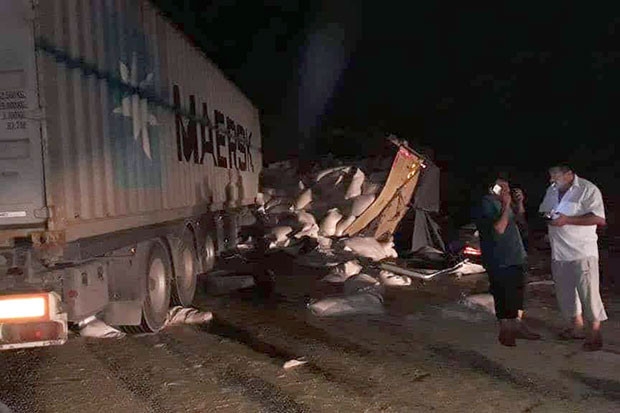 yola savrulan arpa çuvalları nedeniyle yol bir süre trafiğe kapatıldı. Kazayla ilgili soruşturma devam ediyor.
