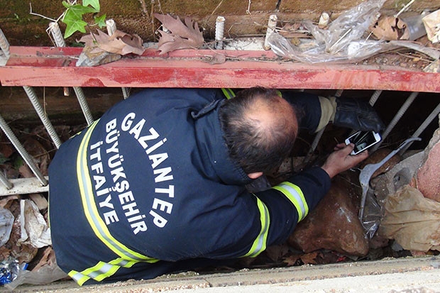 İslahiye’de Atatürk Mahallesi'nde atık su kanalına düşen köpek, kanalın demir parmaklıkları nedeniyle kanalizasyondan çıkamadı. Yavru köpeğin sesini duyan vatandaşlar, itfaiye ekiplerinden yardım istedi.