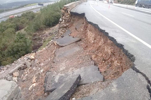 Nurdağı Osmaniye D-400 Kara-yolunun 7. kilometresinde Amanos Dağları Rüzgarlı viraj mevkinde aşırı yağışlar sonucu oluşan heyelan nedeniyle karayolu çöktü.