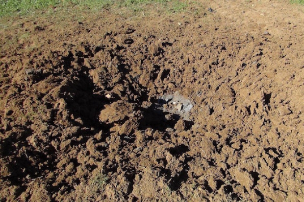 Suriye sınırındaki Gaziantep’in Karkamış ilçesinde dördüncü havan topu, bir ev ve eczane arasındaki boşluğu düştü. Topun çok yakınına düştüğü ev büyük hasar gördü.