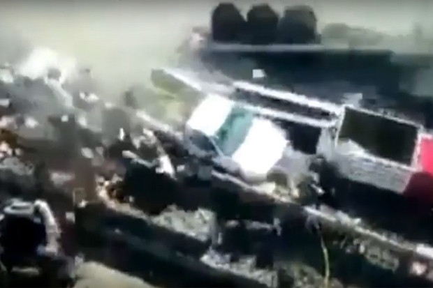 Meksika’nın başkenti Meksiko’da otoyolda temizlik yapan işçiler korkunç bir kaza yaşadı.