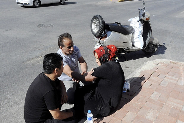 GAZİANTEP'te, Nafiz Koca motosikletle hareket halindeyken otomobile çarpınca, arkasında oturan eşi Saadet Koca yola savrularak yaralandı. Yaralanan eşini taksiyle eve göndermek isteyen Nafiz Koca, çevredekiler tarafından güçlükle ikna edildi. Yaralı kadın, eşinin ikna edilmesiyle çağırılan ambulansla hastaneye götürüldü.