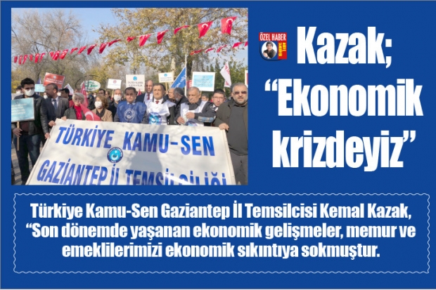 Türkiye Kamu-Sen Gaziantep İl Temsilcisi Kemal Kazak, "Son dönemde yaşanan ekonomik gelişmeler, memur ve emeklilerimizi ekonomik sıkıntıya sokmuştur. Geçen sene bu günlerde dolar 7,90 iken, bugün 14,3 olmuştur. Artış yüzde 81. Geçen sene bugünlerde çeyrek altın 724 TL iken, bugün 1.320 TL olmuştur. Artış yüzde 82" oldu dedi.